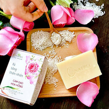 Xà Bông Tắm Cám Gạo Hoa Hồng được làm từ 100% nguyên liệu tự nhiên như cám gạo ogranic, cánh hoa hông tươi vào buổi sáng sơm tại đồi hoa hồng hữu cơ trồng tại Thái Nguyên, không phun tưới bất kì phân bón hoá học hay thuốc trừ sâu, trừ cỏ, không chứa các chất gây hại nên an toàn với mọi làn da kể cả những làn da nhạy cảm nhất.